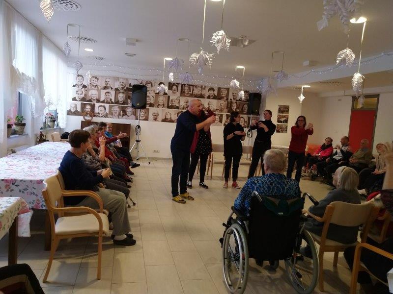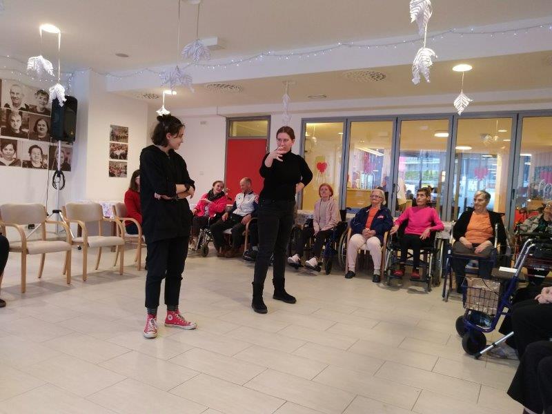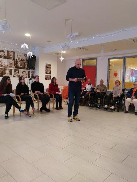 Mladi umetniki, člani KUD LJUD iz Ljubljane so nam 5.3. popestrili četrtkovo popoldne. Prebirali so nam pesmi in nam predstavili zanimivo gledališko improvizacijo, v kateri smo sodelovali tudi mi: malo smo razgibali prste in grla, najpomembneje pa je, da smo odšli domov dobre volje.