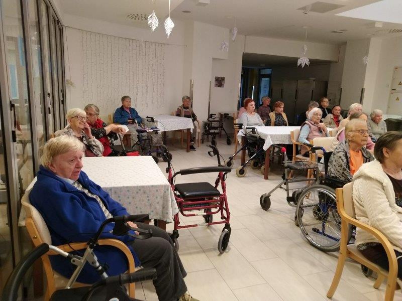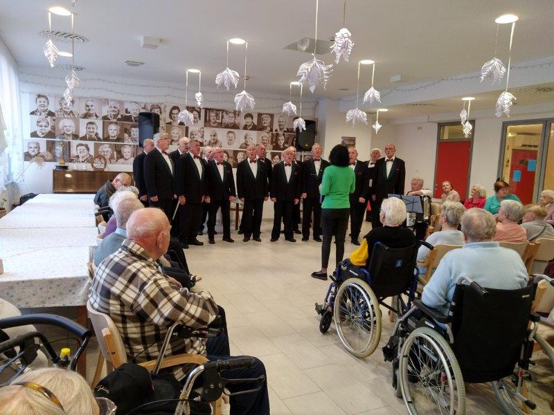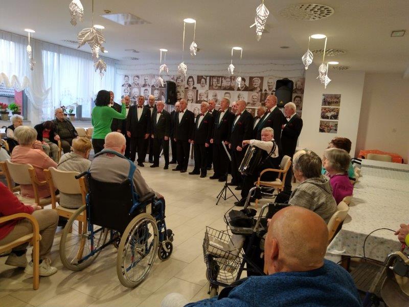 V torek, 23.4. so nam zapeli člani Moškega PZ Zarja! Naša jedilnica se je po dolgem času spet zatresla od gromkih moških glasov, mi pa smo z veseljem pritegnili k pesmim, ki so nas za trenutek ponesle nazaj v neke lepše čase! Hvala, dragi “Zarjani”! Bilo je zelo lepo!