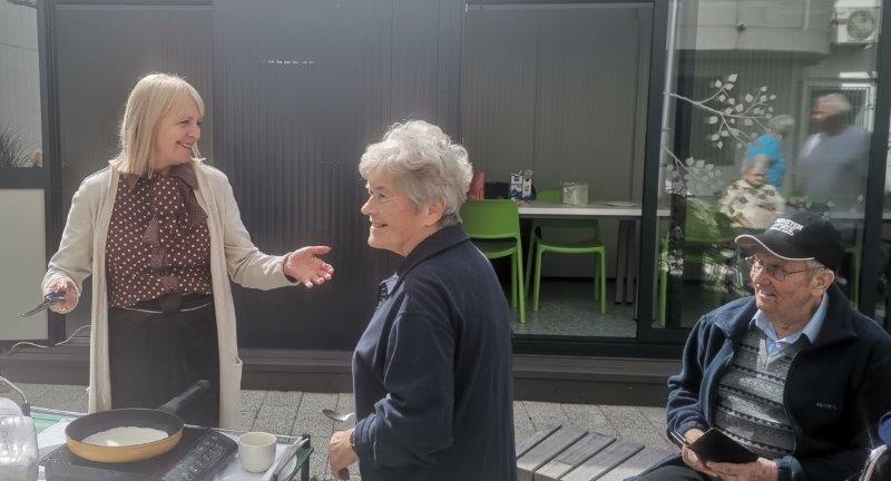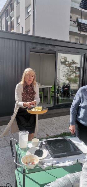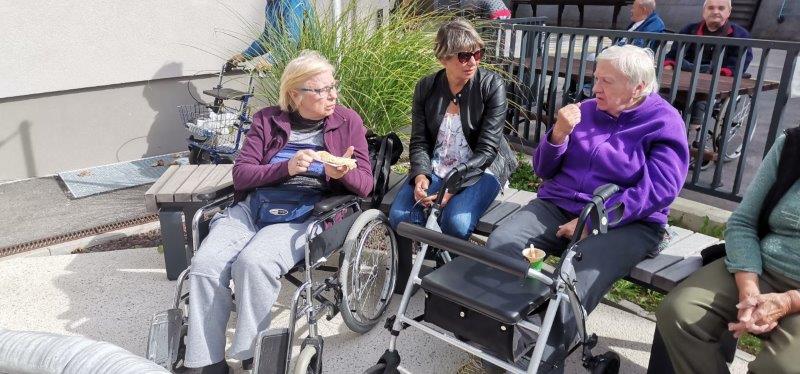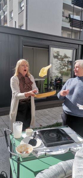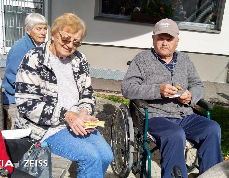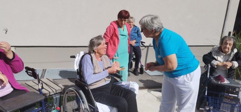 Prvega oktobra smo praznovali Mednarodni dan starejših. Lepo dopoldne se je prevesilo v ravno prav prijetno sončno in toplo popoldne, ki smo si ga popestrili s peko palačink v našem parku. Začeli smo bolj previdno, ko pa se nam je pridružila ga. direktorica, je hitro postalo razpoloženje bolj živahno in veselo. Med peko palačink se je naša direktorica tudi zavrtela s stanovalci, pa palačinke kljub temu niso bile zažgane. Okusne palačinke, vesela glasba, lepo vreme in dobra družba…lep dan starejših je bil!
