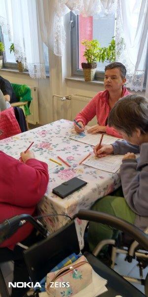Spet so nas obiskali naši prijatelji iz VDC Zasavje s svojimi mentoricami. Tokrat smo se spoznali z zanimivo Aboridžinsko tehniko risanja, predvsem pa smo se družili in se imeli lepo. Prinesli so nam pokazat tudi nekaj svojih slik, ki so sedaj na ogled v naši recepciji. Splača se jih videti, saj so res lepe!