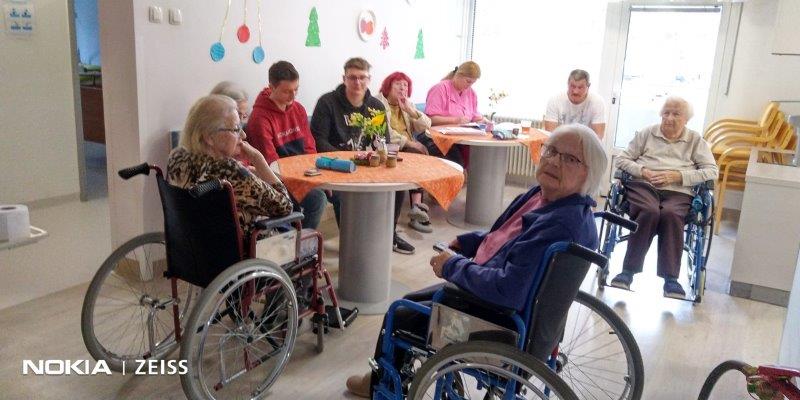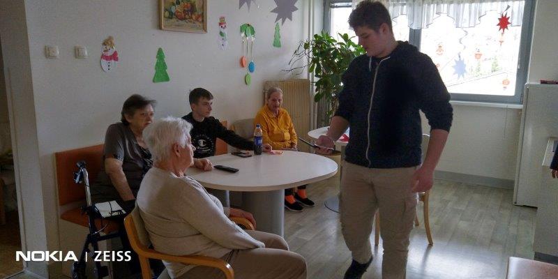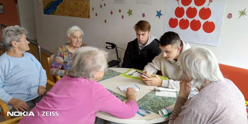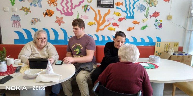 Kar dva dopoldneva so se z nami družili dijaki in profesorica iz Srednje tehnične in poklicne šole Trbovlje. Fantje so nam z veseljem pomagali pri mnogih opravkih, se družili s stanovalci in jim svetovali o uporabi mobilnih telefonov.