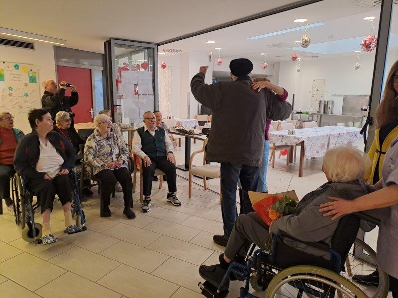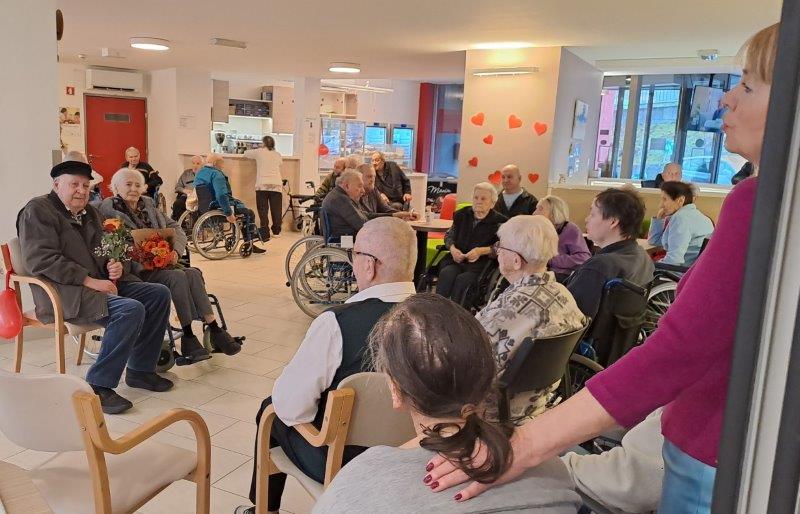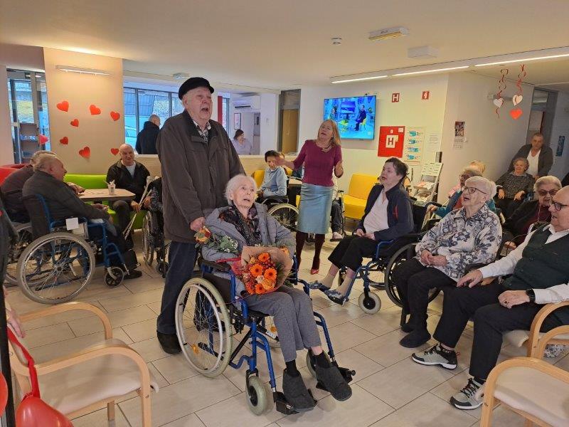 Dan pred Valentinovim sta v Domu praznovala 60. obletnico poroke zakonca Cenc. Ob tej priložnosti jima je čestitala go. direktorica Danica Hren, pevski zbor pa jima je zapel nekaj pesmi. Bilo je zelo lepo in ganljivo, gospod in in gospa Cenc pa sta nas vse navdušila s svojim ljubečim odnosom.