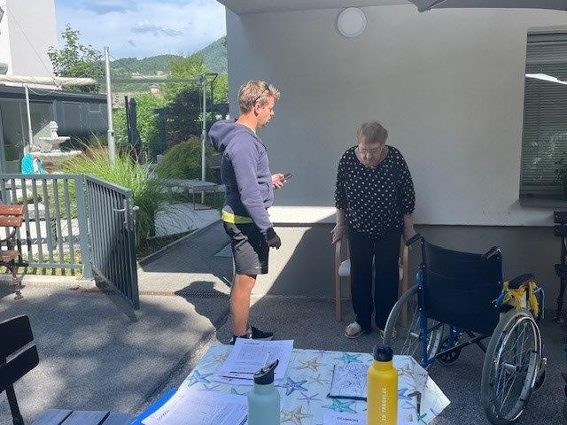 V sredo po telovadbi na dvorišču so strokovni delavci Centra za krepitev zdravja iz ZD Trbovlje z našimi stanovalci izvedli testiranje fizične kondicije. Naši stanovalci so z veseljem sodelovali, saj res pridno