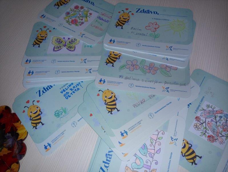 Ob Svetovnem dnevu varnosti pacientov, ki letos poteka pod sloganom “Varni od začetka”, smo pomagali z risanjem in pisanjem voščil na kartice za novorojenčke. Čeprav naše risbe niso lepe in se včasih težko izražamo, naša voščila novorojencem prihajajo iz srca!