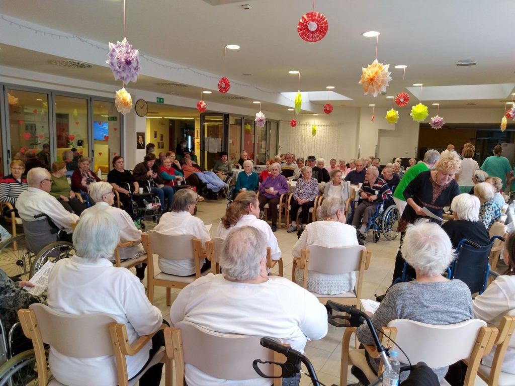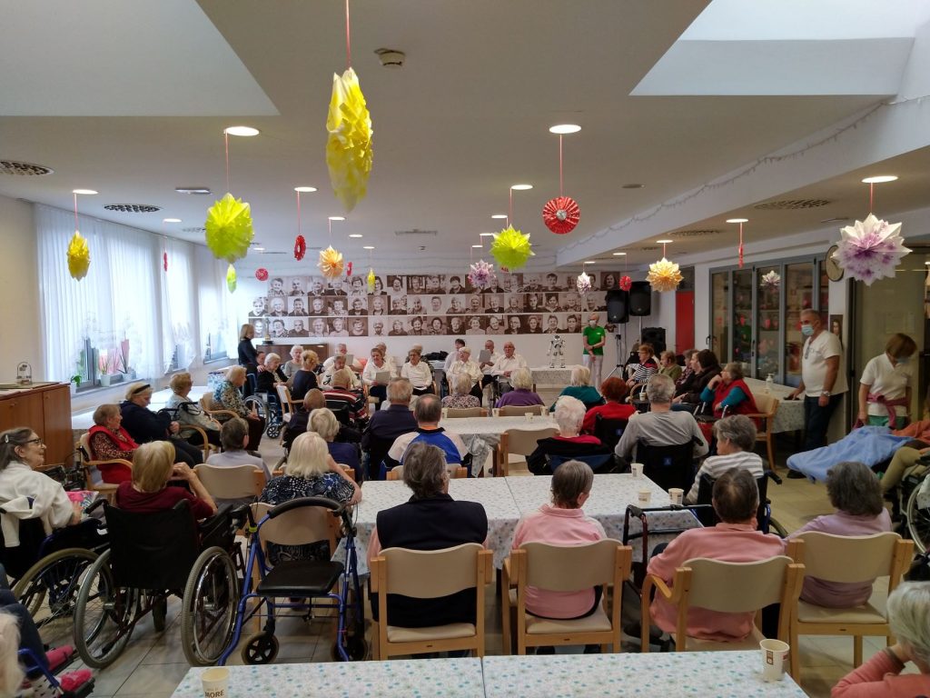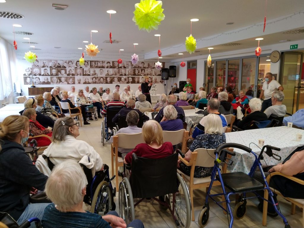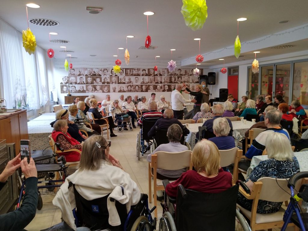 Domska glasbena skupina Nohšiht vsako sredo pridno vadi. Vodi jo gospa Lea Hlebec. Za današnje srečanje so pripravili pester pomladni program skupaj z humanoidno robotko Evo ter njeno mentorico dr. Mašo Mikkel Jazbec. Zapeli smo z robotko Evo