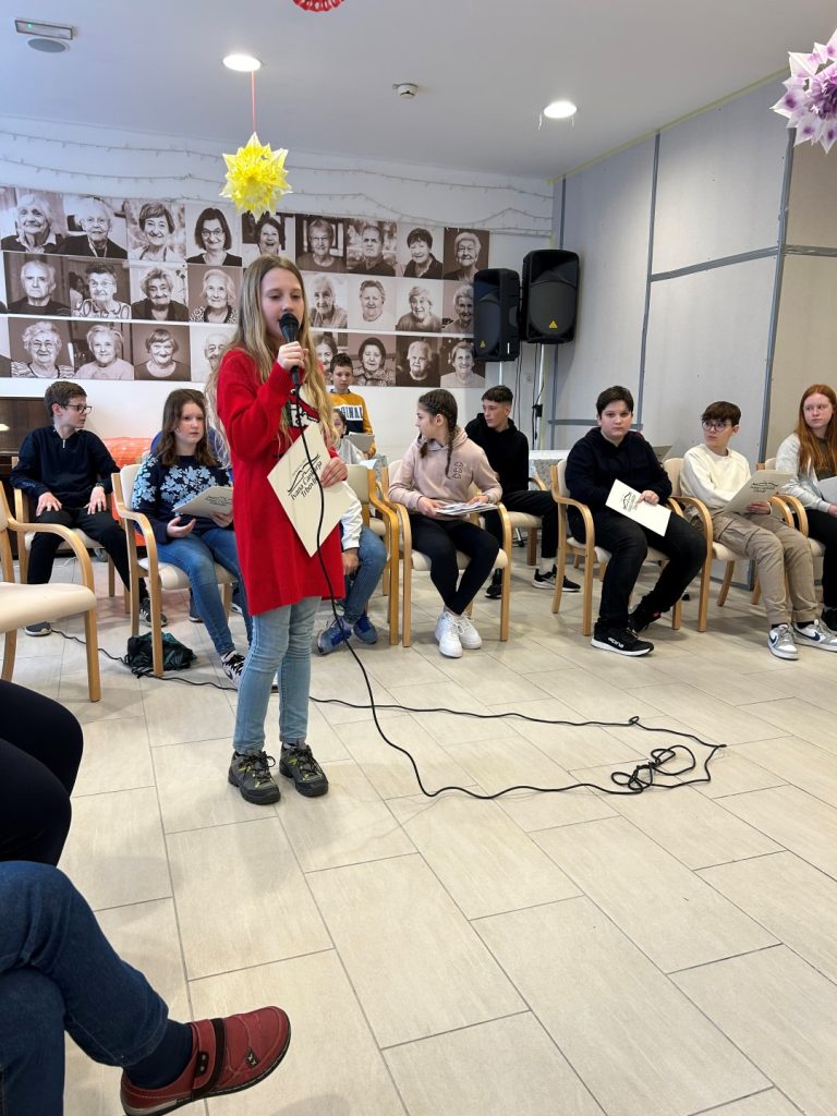 Učenci Osnovne šole so nam pripravili recital Kajuhovih pesmi, namenjenih stoti obletnici Kajuhovega rojstva, popestren z glasbenim vložkom partizanskih in domoljubnih pesmi.