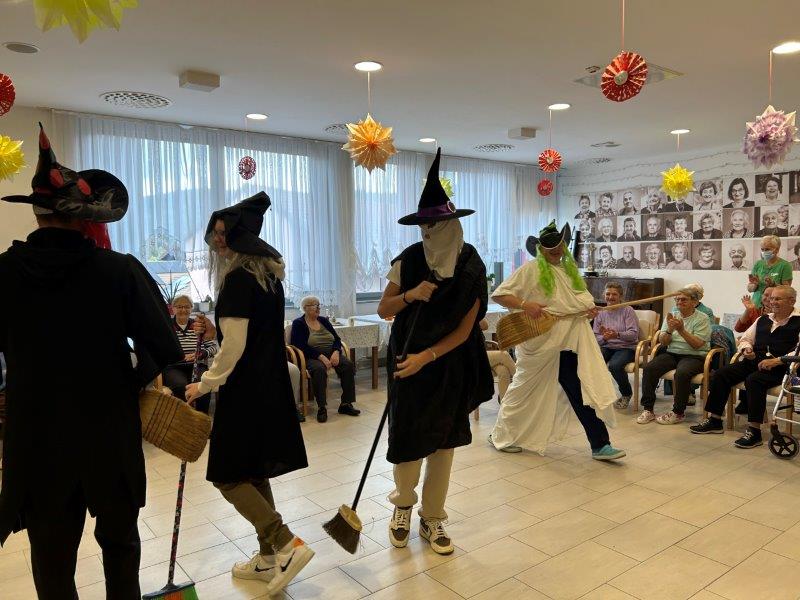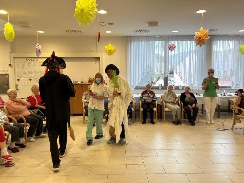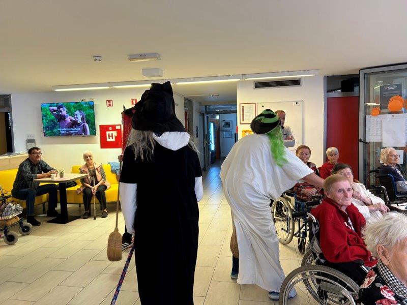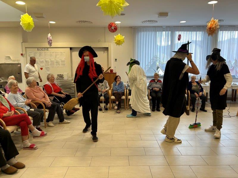 Čarovnice in duhci so nas prišli obiskat kar sredi prireditve, zaplesali so čarovniški ples ter se odpeljali na metlah neznano kam. Obisk čarovnic Obisk čarovnic