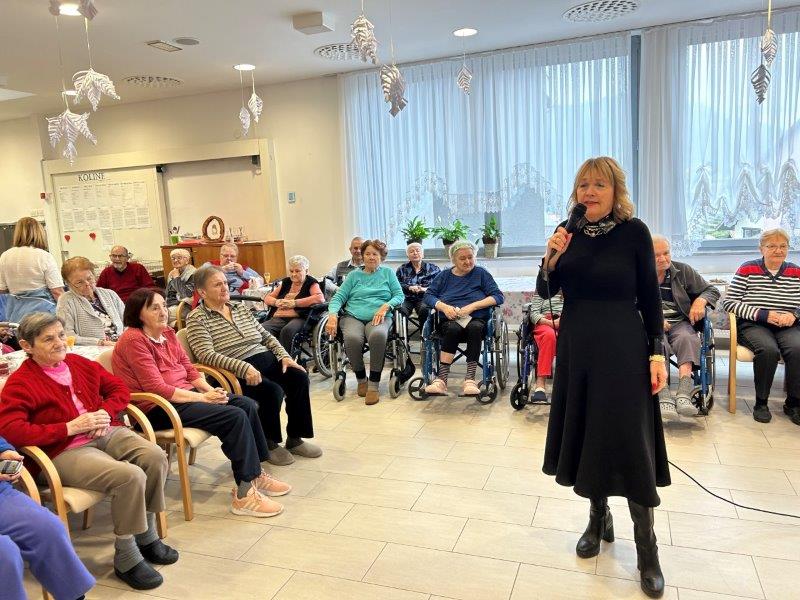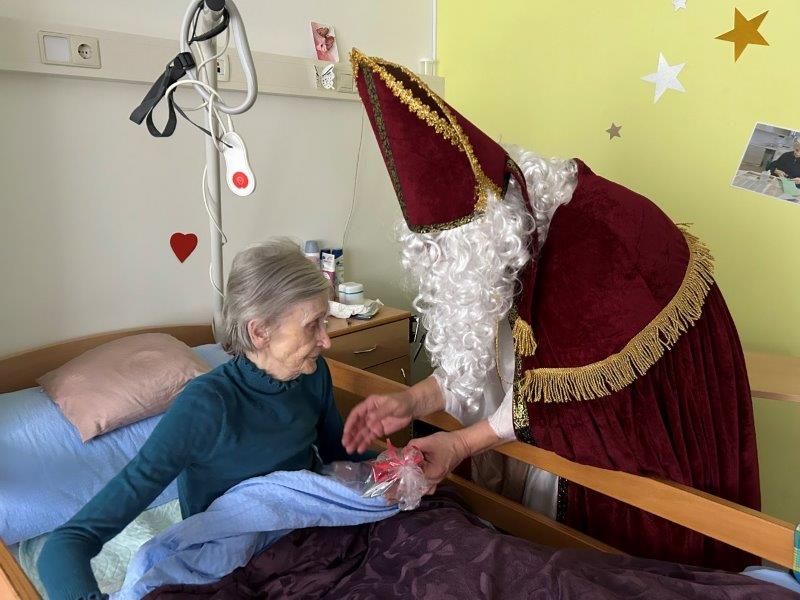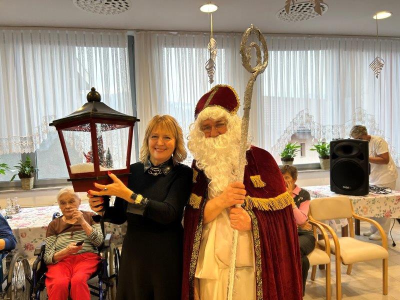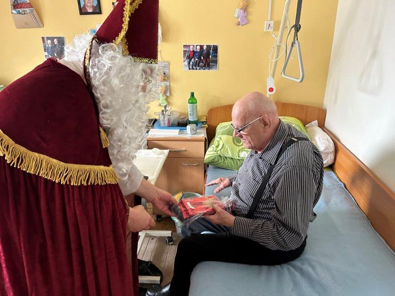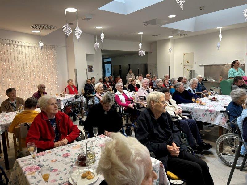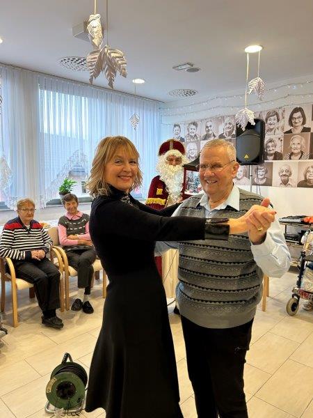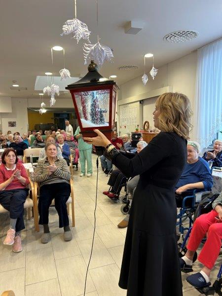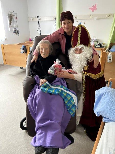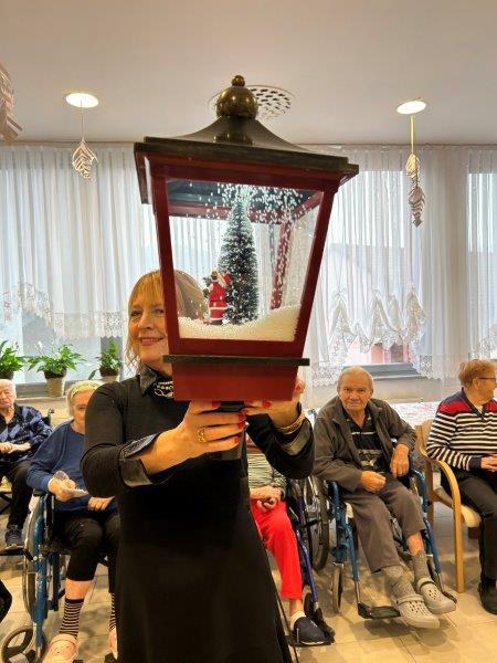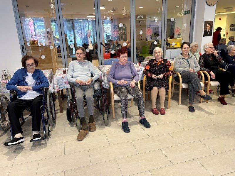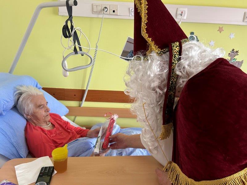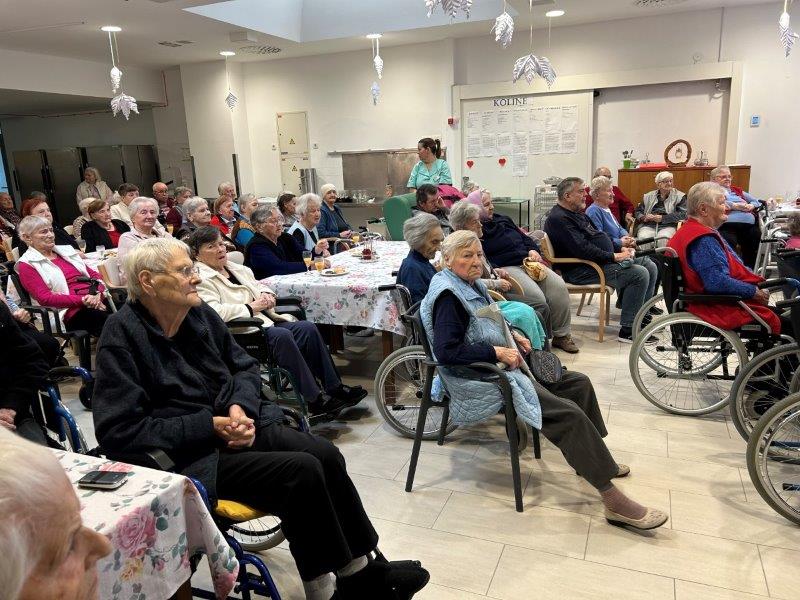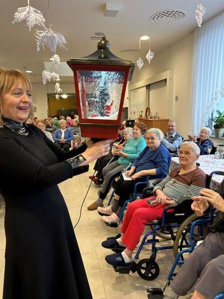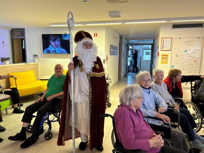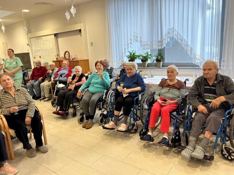 Hladno jutro nam je polepšal prihod sv. Miklavža. Je sveti mož, eden od treh, ki nas obišče v mesecu decembru. Nekaj dni pred miklavževanjem smo mu napisali pismo z željami. S seboj je pripeljal tudi pridne angelčke, ti so stanovalcem razdelili Miklavževa darila, med drugimi tudi svetilko s padajočim snegom.