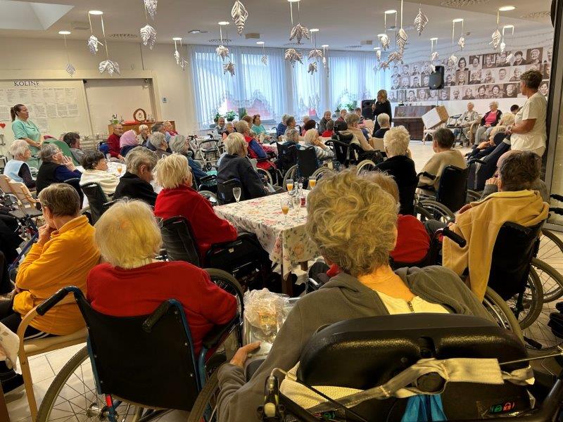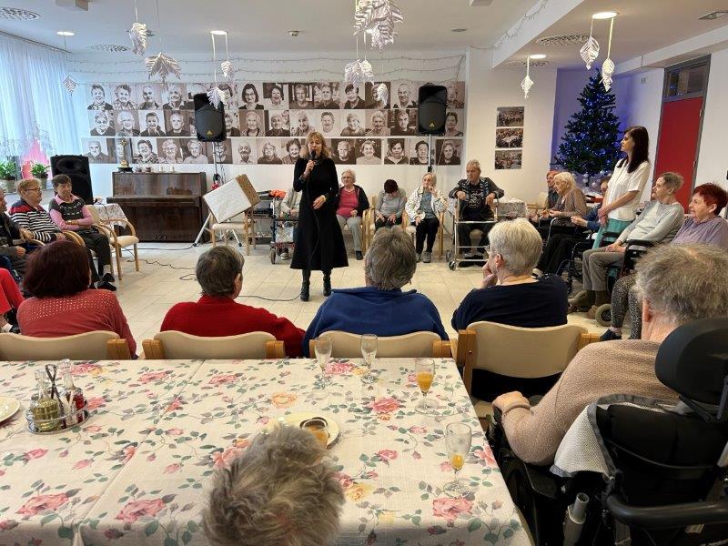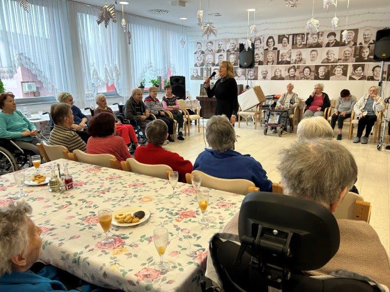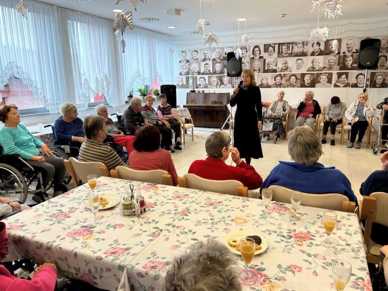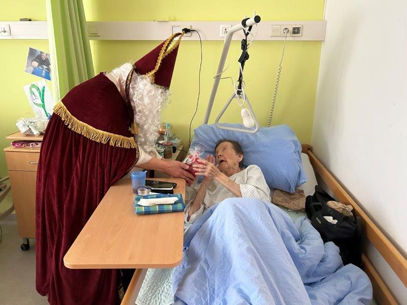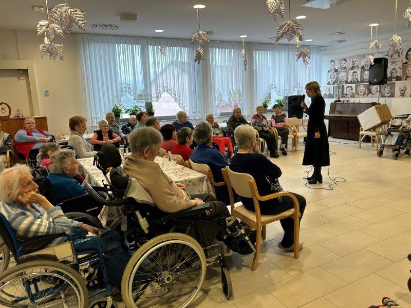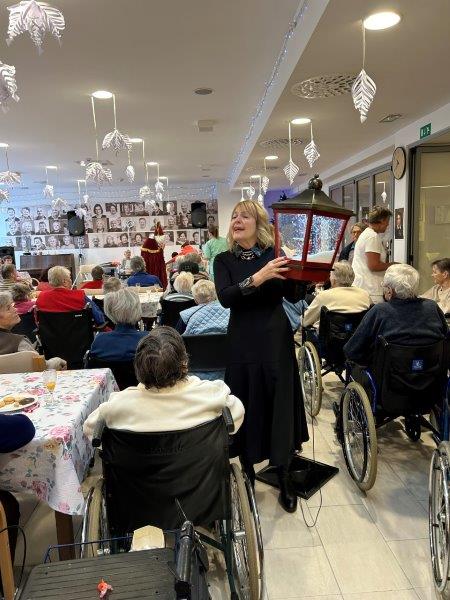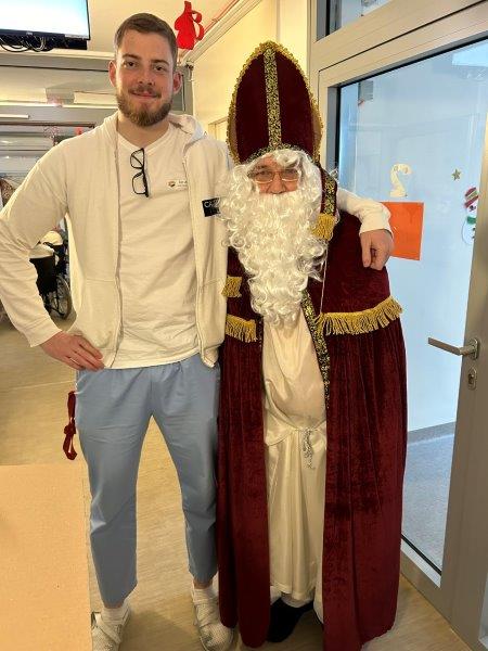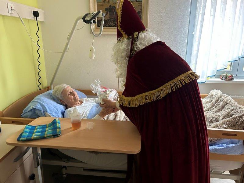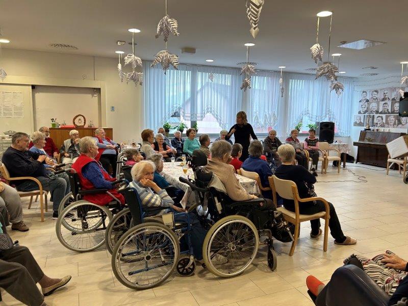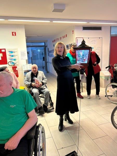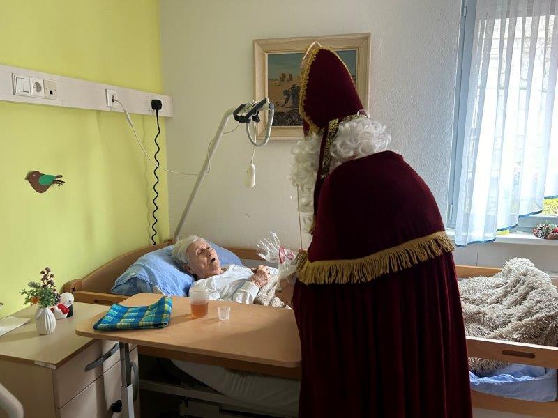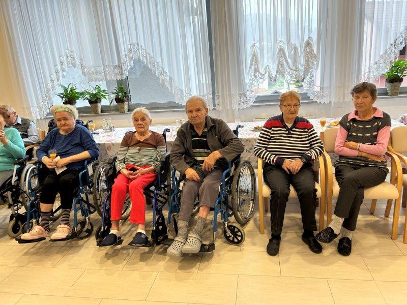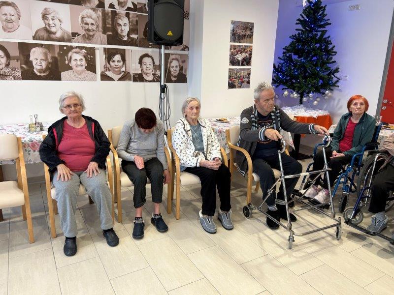 Hladno jutro nam je polepšal prihod sv. Miklavža. Je sveti mož, eden od treh, ki nas obišče v mesecu decembru. Nekaj dni pred miklavževanjem smo mu napisali pismo z željami. S seboj je pripeljal tudi pridne angelčke, ti so stanovalcem razdelili Miklavževa darila, med drugimi tudi svetilko s padajočim snegom.
