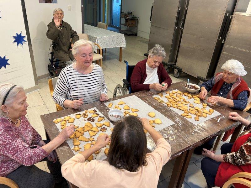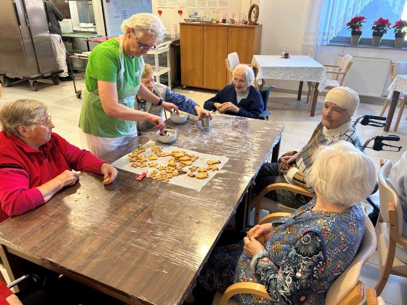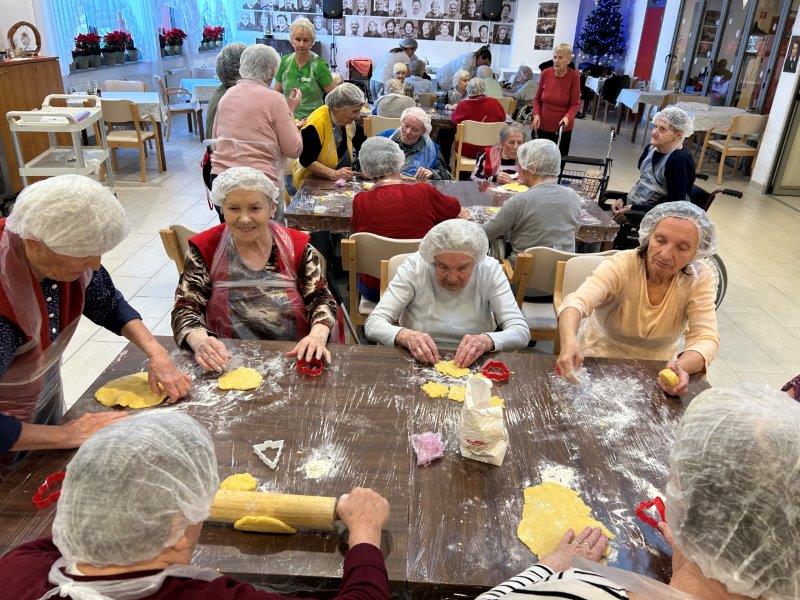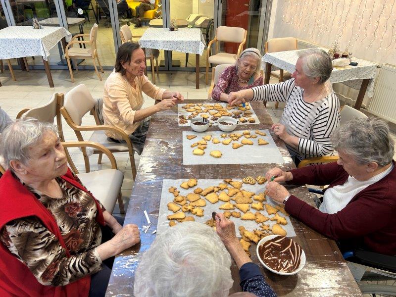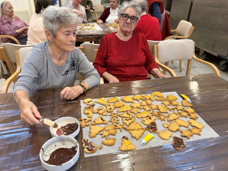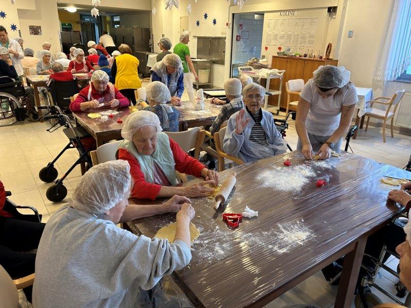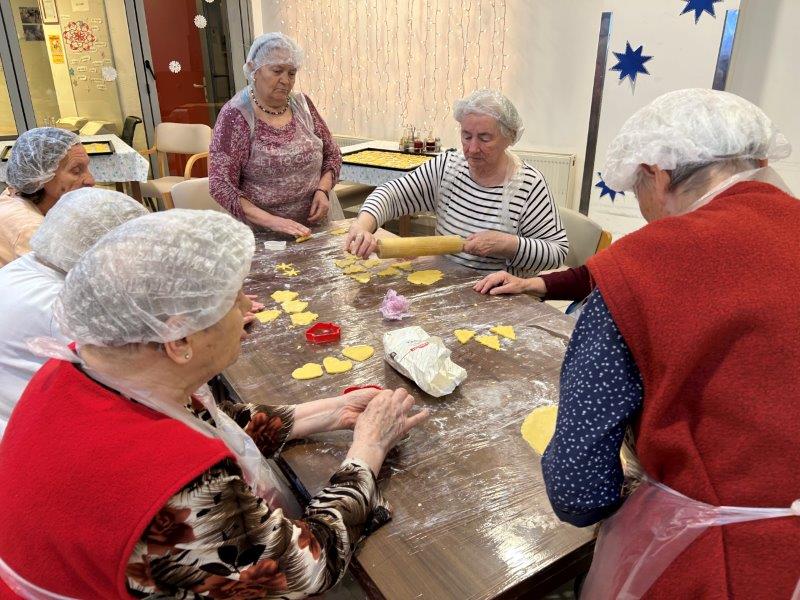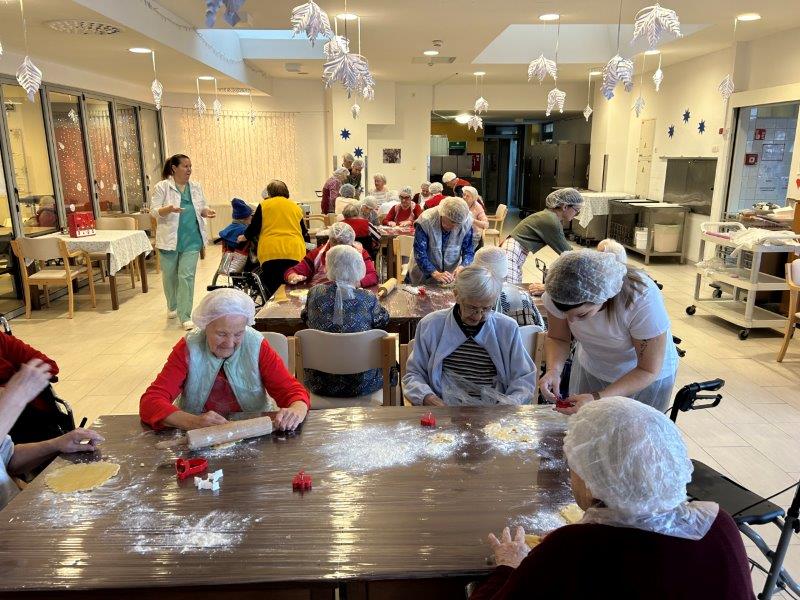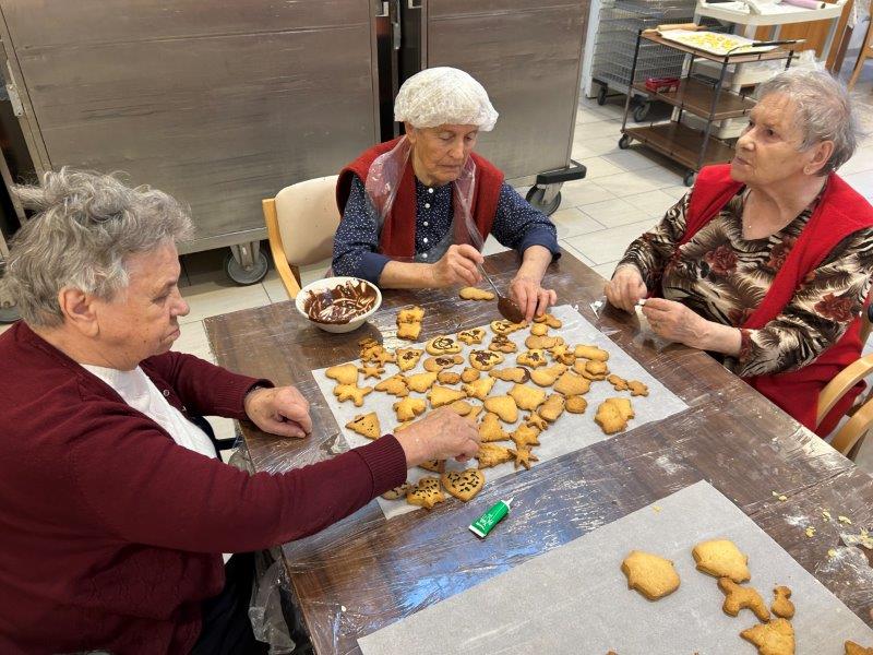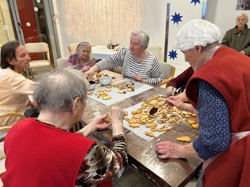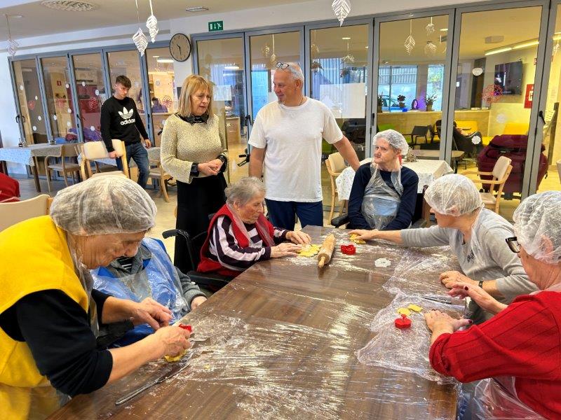 Prazniki so pred vrati in želeli smo imeti mize polne dobrot, zato smo se družili z dijaki Gimnazije in ekonomske srednje šole Trbovlje, pekli smo piškote vseh oblik in velikosti ter okusov. V ozadju je odmevala božična glasba in slišalo se je kramljanje stanovalcev.