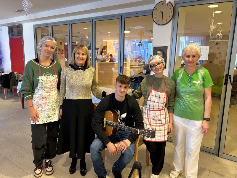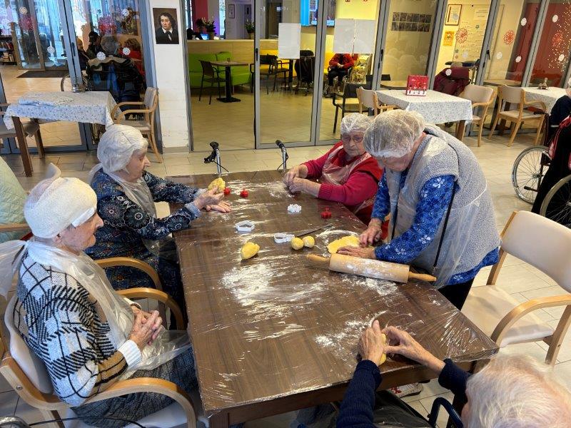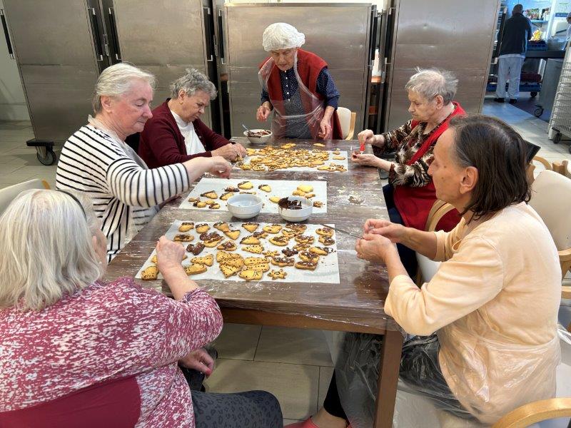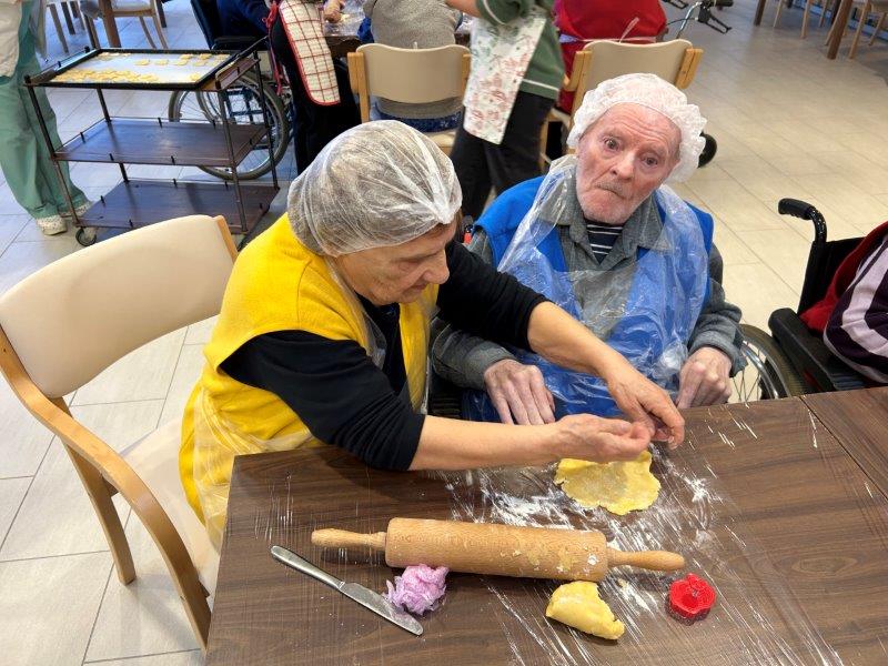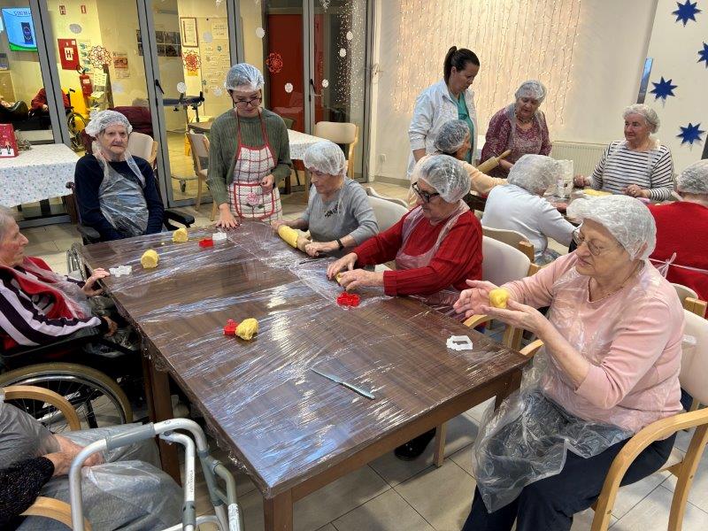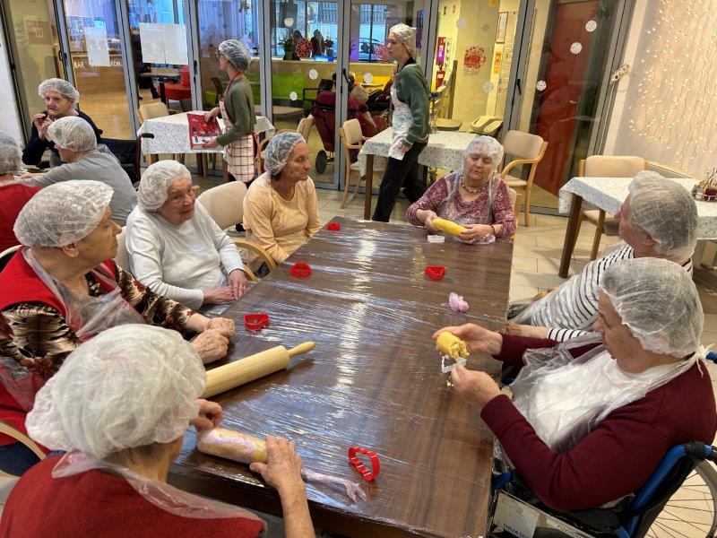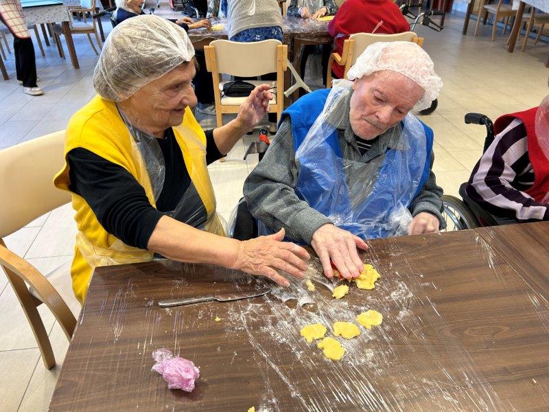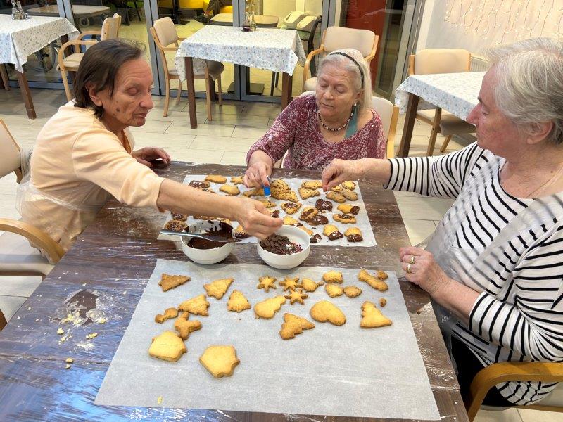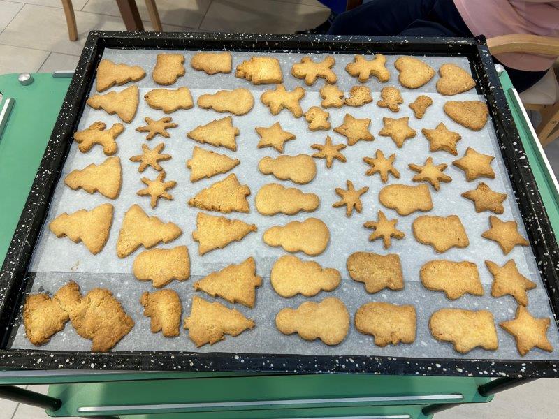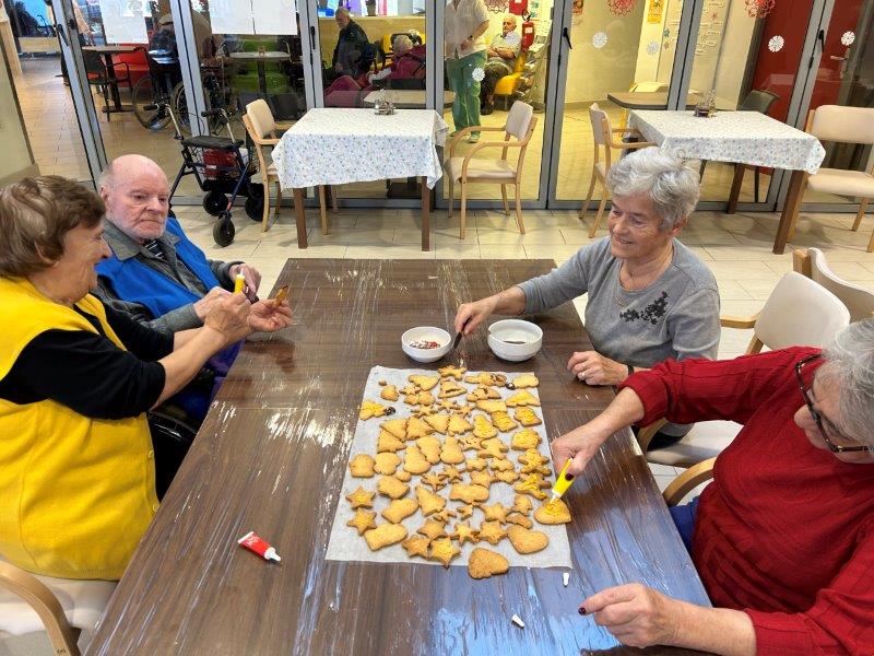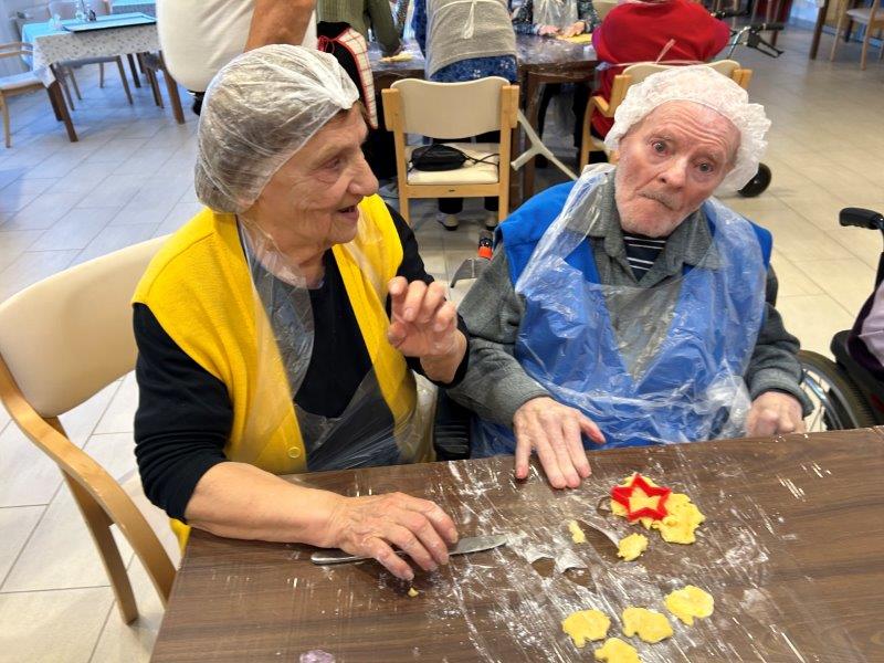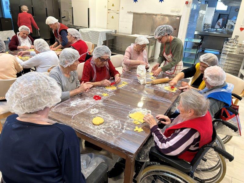 Prazniki so pred vrati in želeli smo imeti mize polne dobrot, zato smo se družili z dijaki Gimnazije in ekonomske srednje šole Trbovlje, pekli smo piškote vseh oblik in velikosti ter okusov. V ozadju je odmevala božična glasba in slišalo se je kramljanje stanovalcev.