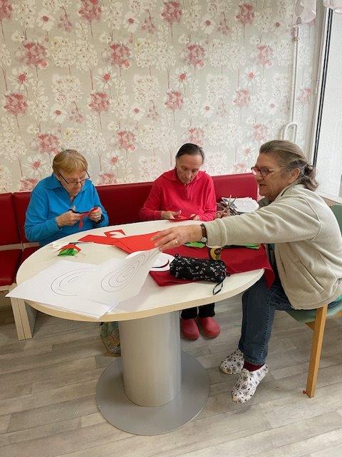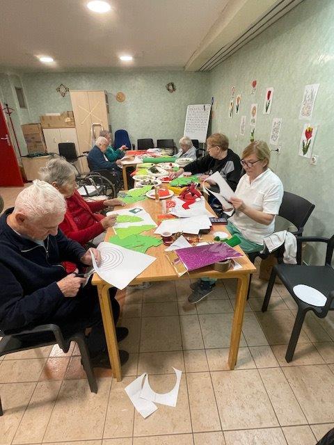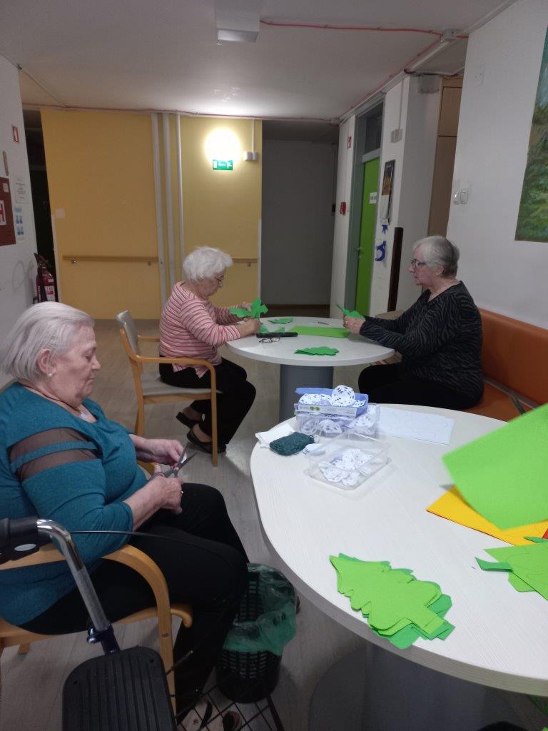 Bliža se december, mesec ko naš Dom zažari v lučkah. Pridne roke naših stanovalcev s polno paro izdelujejo okraske, saj je naša hiša zelo velika in je potrebnih veliko okraskov, da jo okrasimo. PRIPRAVE NA VESELI DECEMBER PRIPRAVE NA VESELI DECEMBER