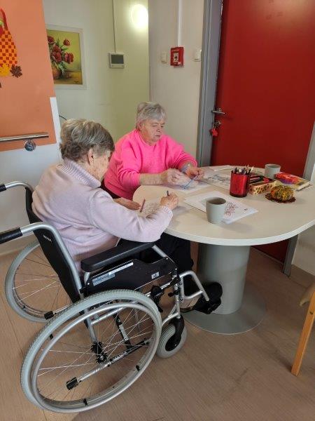 V naši gospodinjski skupini Kofetarice so vedno pridni in ustvarjalni. Zato je prav, da si privoščijo tudi sladke dobrote. Kadar jih spečejo sami, diši po vsem domu, včasih pa se posladkajo tudi s piškoti iz trgovine.