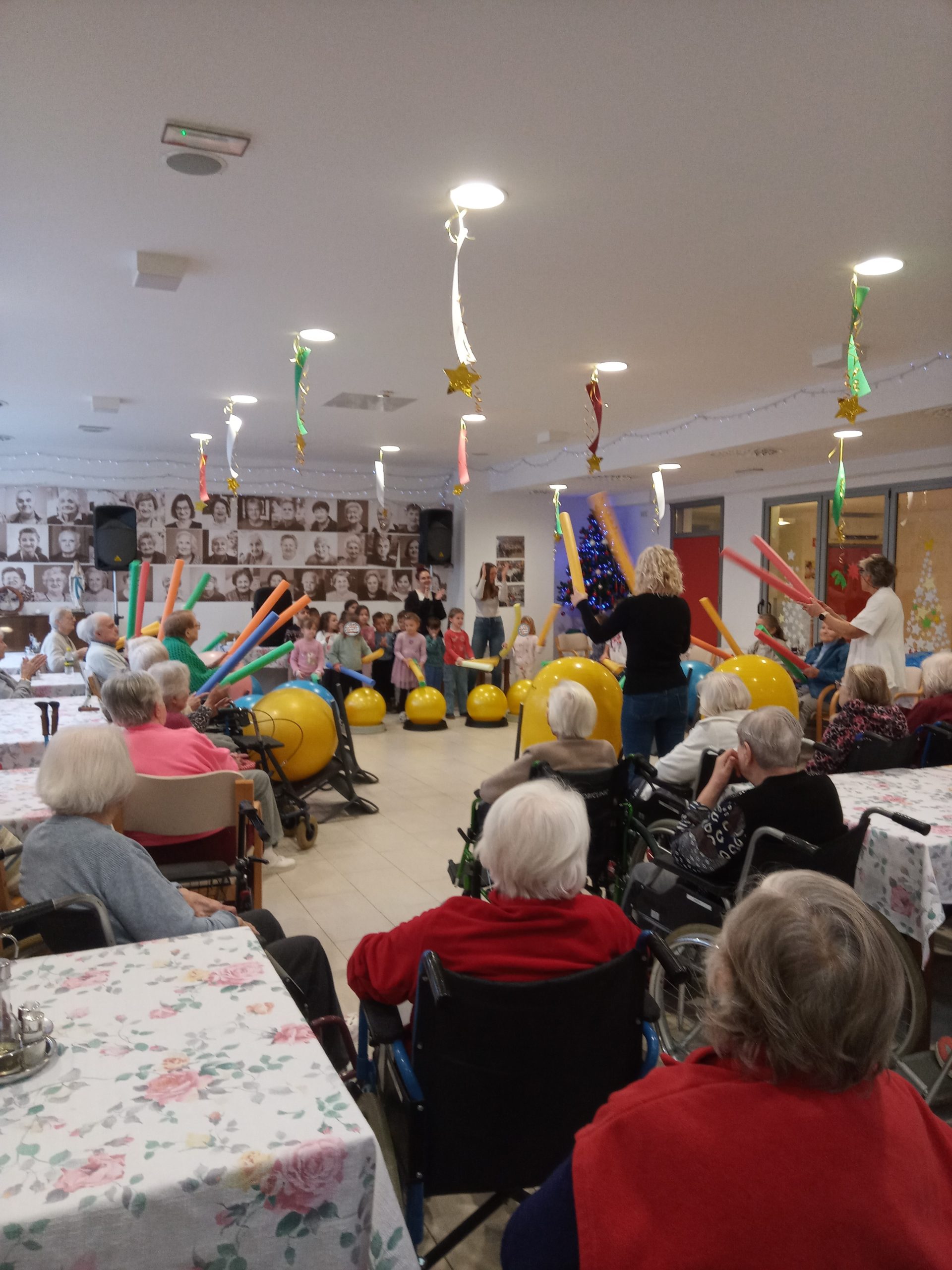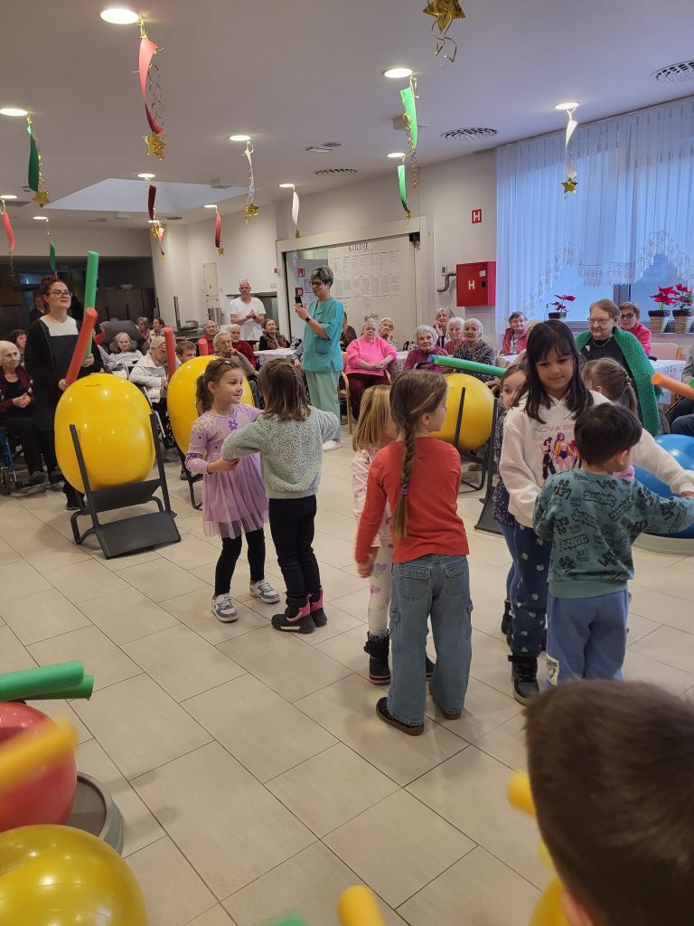 Danes so nas razveselili otroci iz vrtca Mojca Trbovlje, ki so v naš dom prinesli obilo smeha, energije in dobre volje. Skupaj smo preživeli čudovito dopoldne, polno igrivosti in glasbe, saj smo na žoge zaigrali kar kot na prava tolkala. Nastali so nepozabni trenutki, ki smo jih ujeli tudi v fotografije. Iskrena hvala otrokom in vzgojiteljicam za obisk in prijetno druženje – mi se že veselimo ponovnega srečanja!