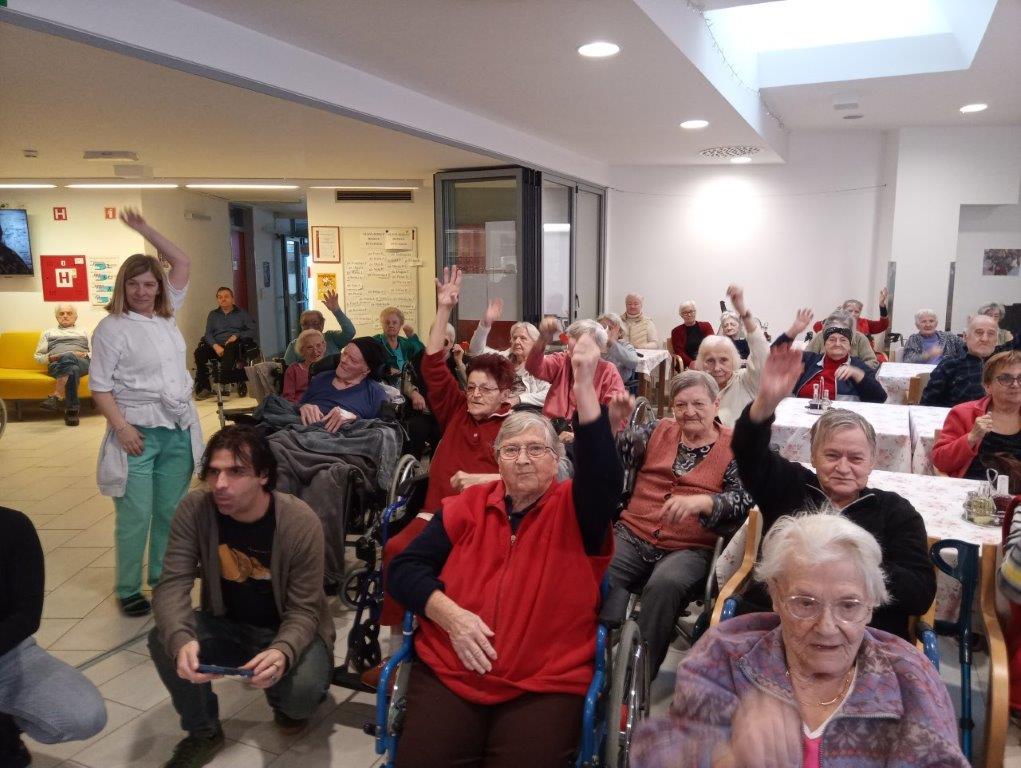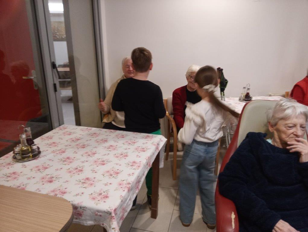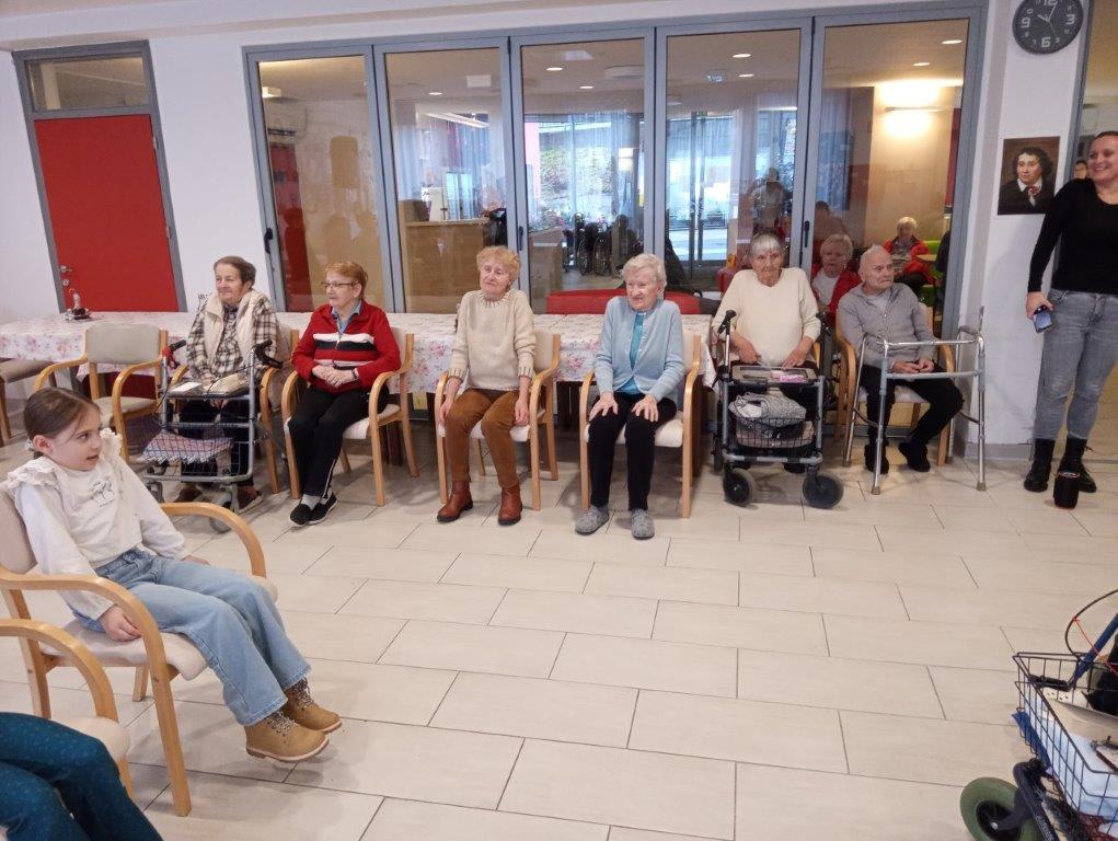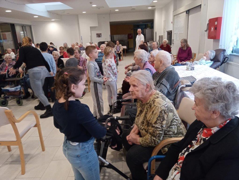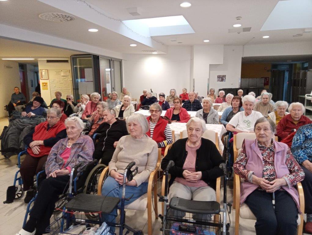Otroci osnovne šole so se predstavili s telovadno-plesnim programom, s katerim so razveselili prisotne. S svojim živahnim  nastopom so napolnili prostor z energijo in dobro voljo. K plesu in gibanju so povabili tudi stanovalce, ki so se z veseljem pridružili. Skupaj so migali, se smejali in dokazali, da gibanje povezuje vse generacije.