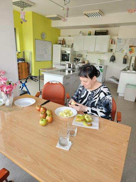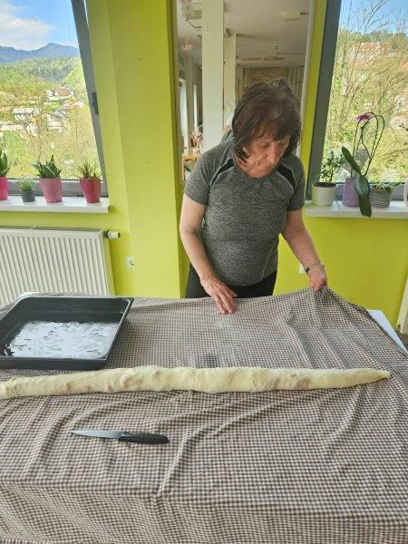 Danes je pri nas zadišalo po domačem! Naše stanovalke so z veliko veselja in spretnosti pripravile slasten štrudelj, ki je že med peko napolnil prostore z omamnim vonjem po jabolkih in cimetu.