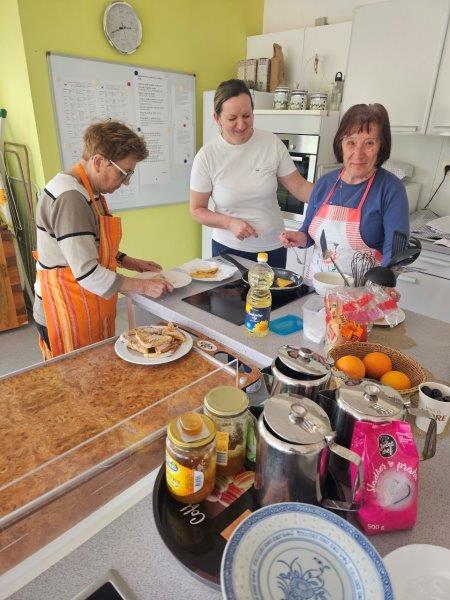 Danes je bilo v našem domu še posebej živahno in dišeče po domačem. Stanovalci so se z veseljem lotili priprave okusnih šnit, pri čemer ni manjkalo smeha, prijetnega druženja in obujanja spominov na stare recepte.