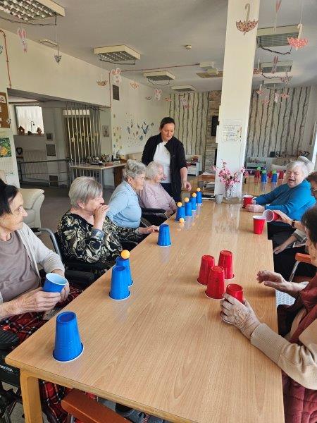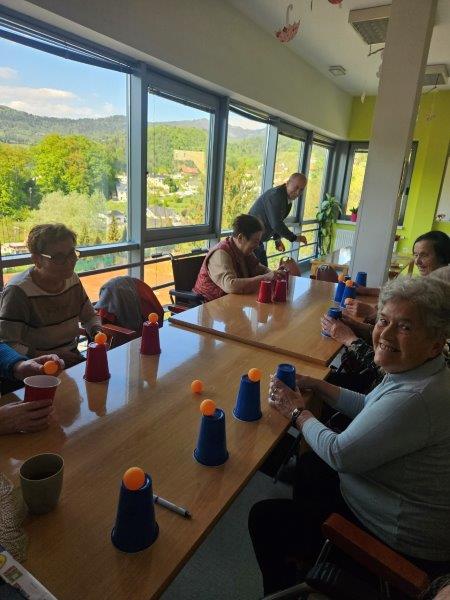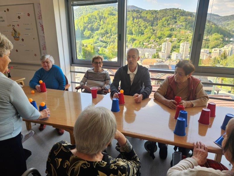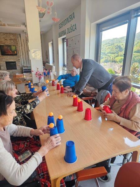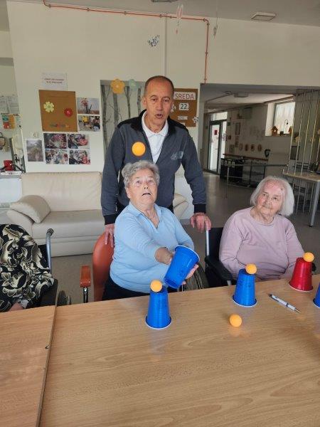 Po sladkem kulinaričnem ustvarjanju pa smo dan nadaljevali v igrivem duhu. Stanovalci so se preizkusili v spretnostni igri lovljenja žogice v kozarec, ki je poskrbela za dobro voljo, nekaj tekmovalnosti in veliko zabave.